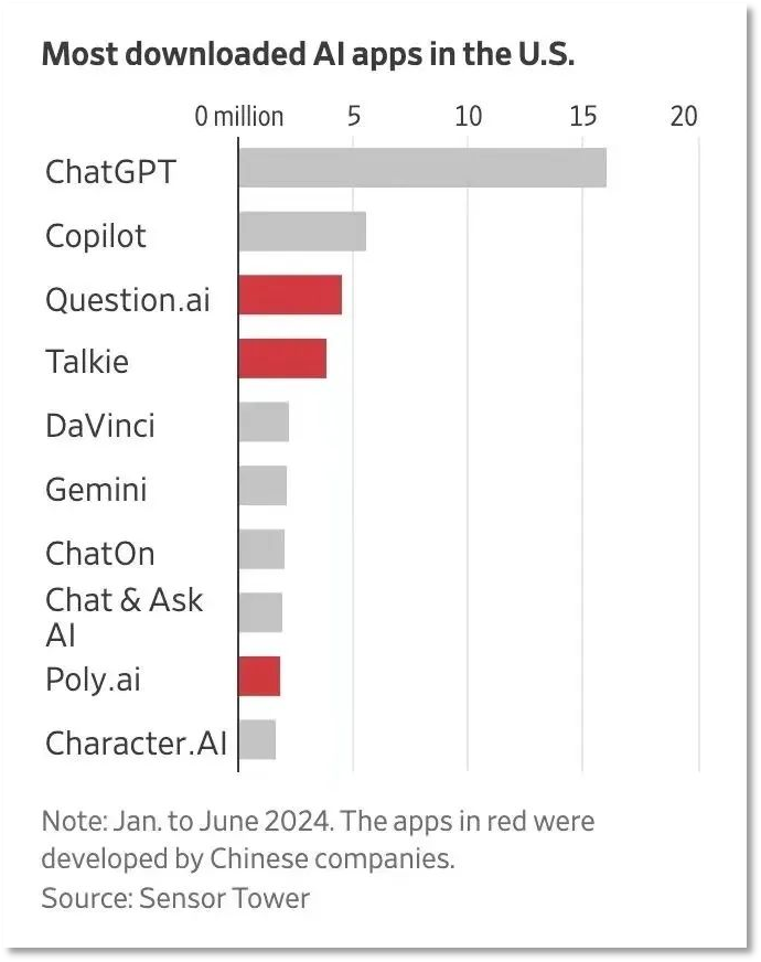 据市场阐发机构SensorTower发布的2024年上半年美国AI使用市场的下载量数据。这为国产AI产物的贸易化供给了优良的土壤!