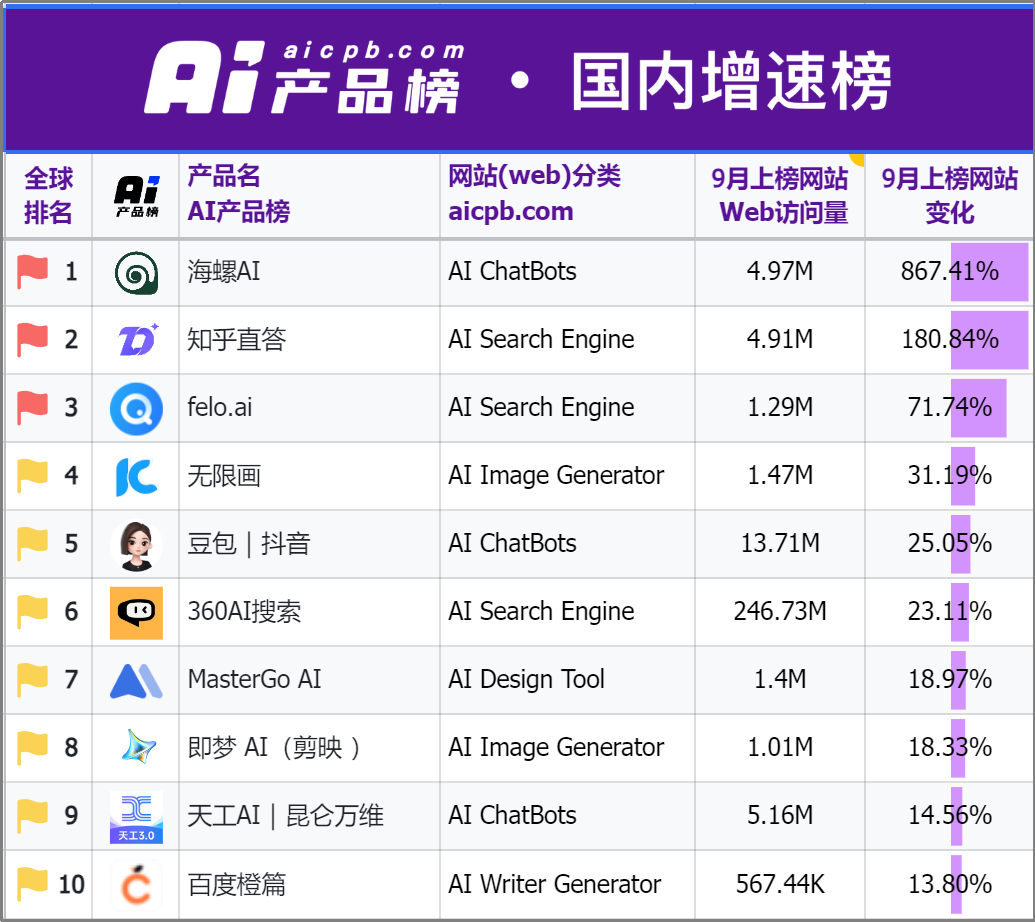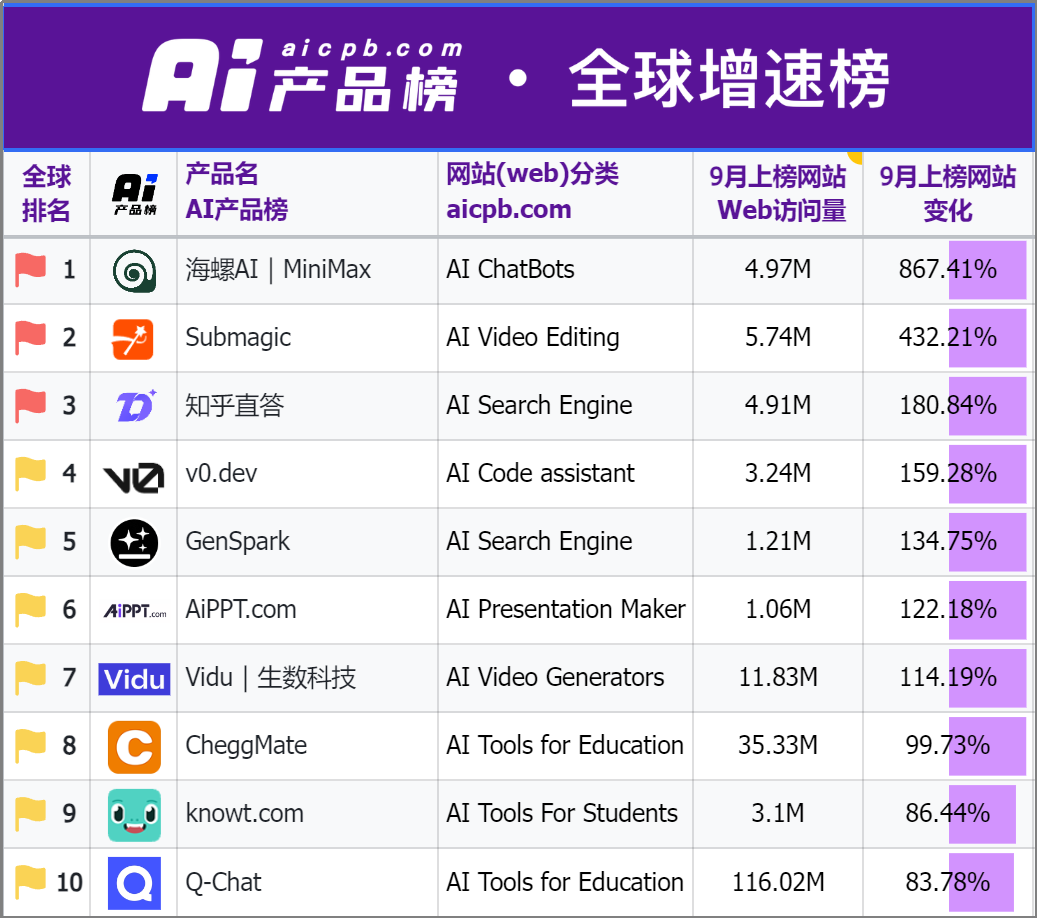 排名前十的AI使用中有三款来自中国企业。有三款App来自中国企业,自MiniMax的首个文生视频模子abab-video-1上线海螺AI后,”